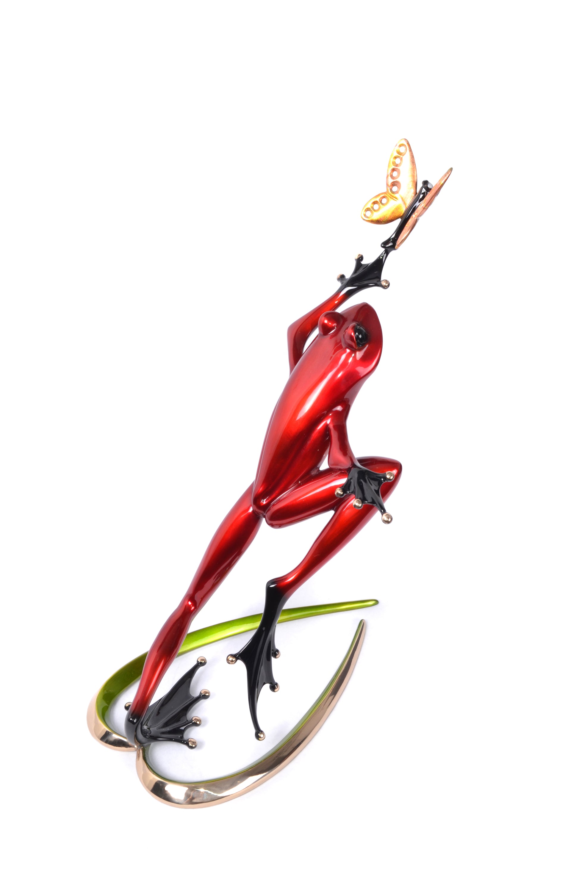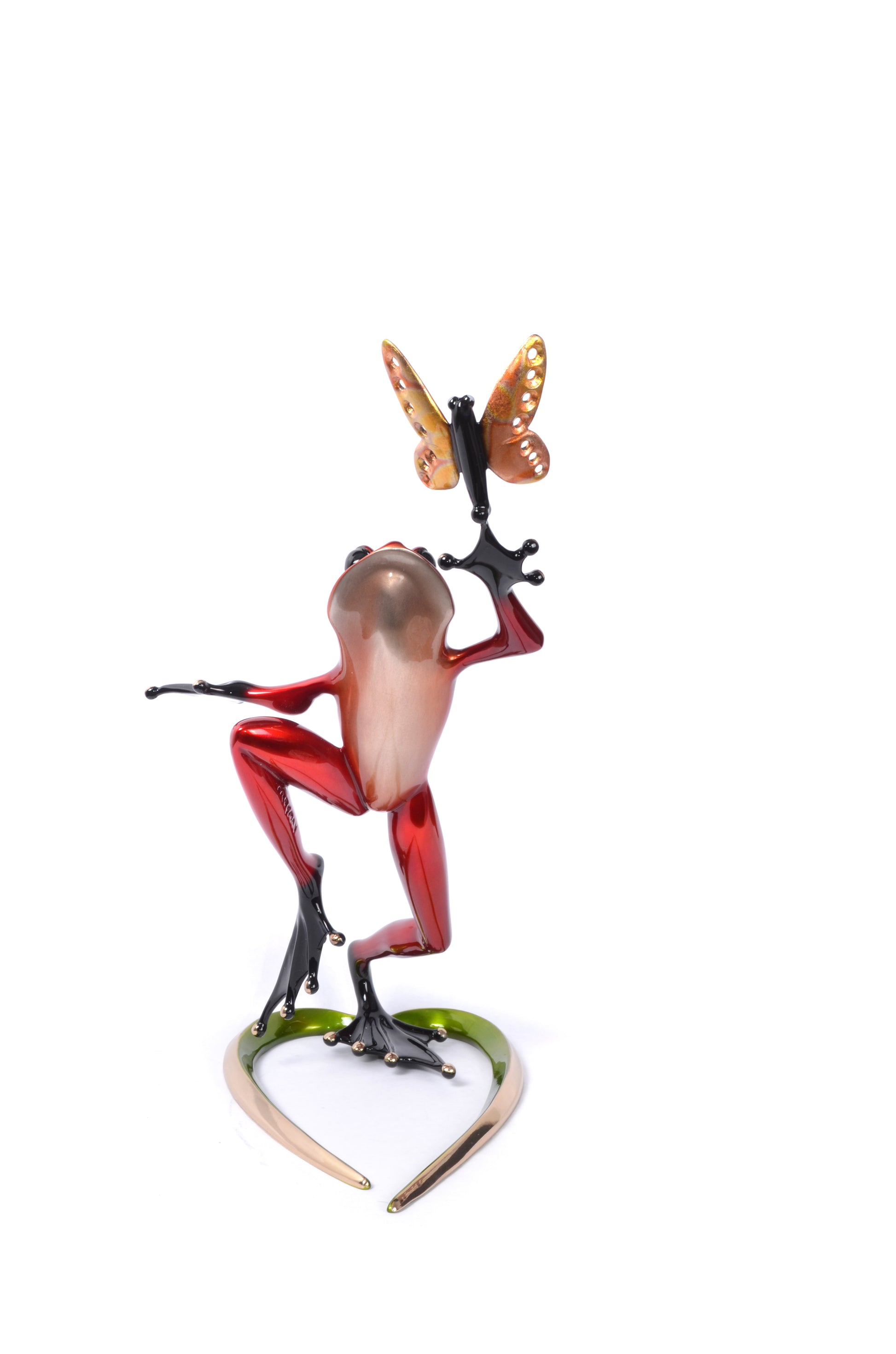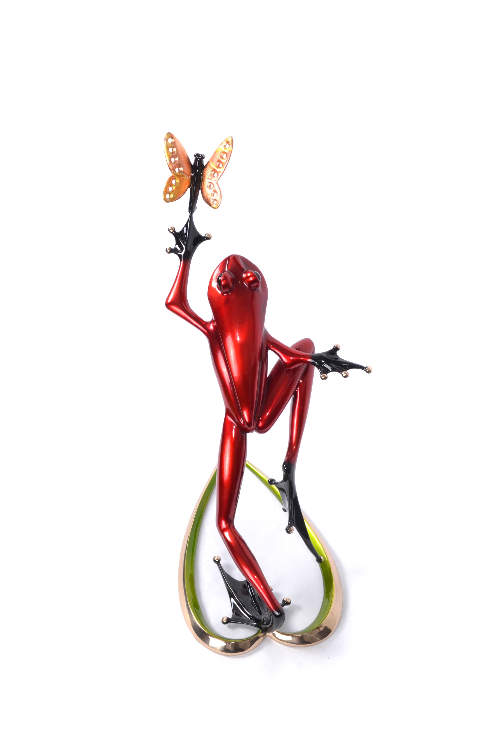 BF251 Be Mine Edition Size: 350 9.75" x 5" x 11.75" Cupid's arrow has found its mark in Tim Cotterill's 2021 Valentine sculpture, Be Mine! A crimson red frog springs from a polished bronze heart-shaped base, reaching for an elusive golden butterfly. Be Mine, a creative expression of attraction, is ideal for Valentine's Day gift giving or treating yourself!
