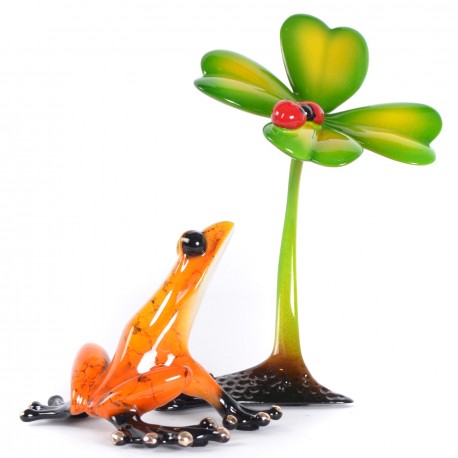 BF236 Beginner's Luck Edition Size 1000 4" L x 2.5" W x 3.75" H (St Patrick's Day Release) A charming, multi-toned frog gazes hopefully at a pair of vivid red ladybugs perched atop a lime green four-leaf clover. Surely, the legendary shamrock will bring good fortune to Tim Cotterill's, playful Beginner's Luck!!
