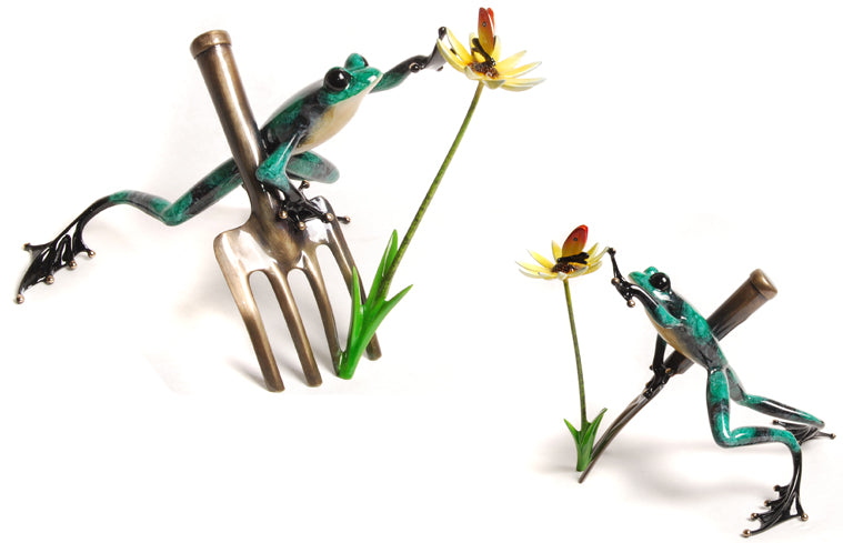 Digger BF182, 2014, Bronze, Limited Edition of 500, Signed & Numbered, 10.5 x 10 x 9.5, Color/Finish: Green/Black, Bronze, Yellow Flower This is Tim's 2014 Mother's Day release and the 10th piece in his series of frogs with a floral scene.