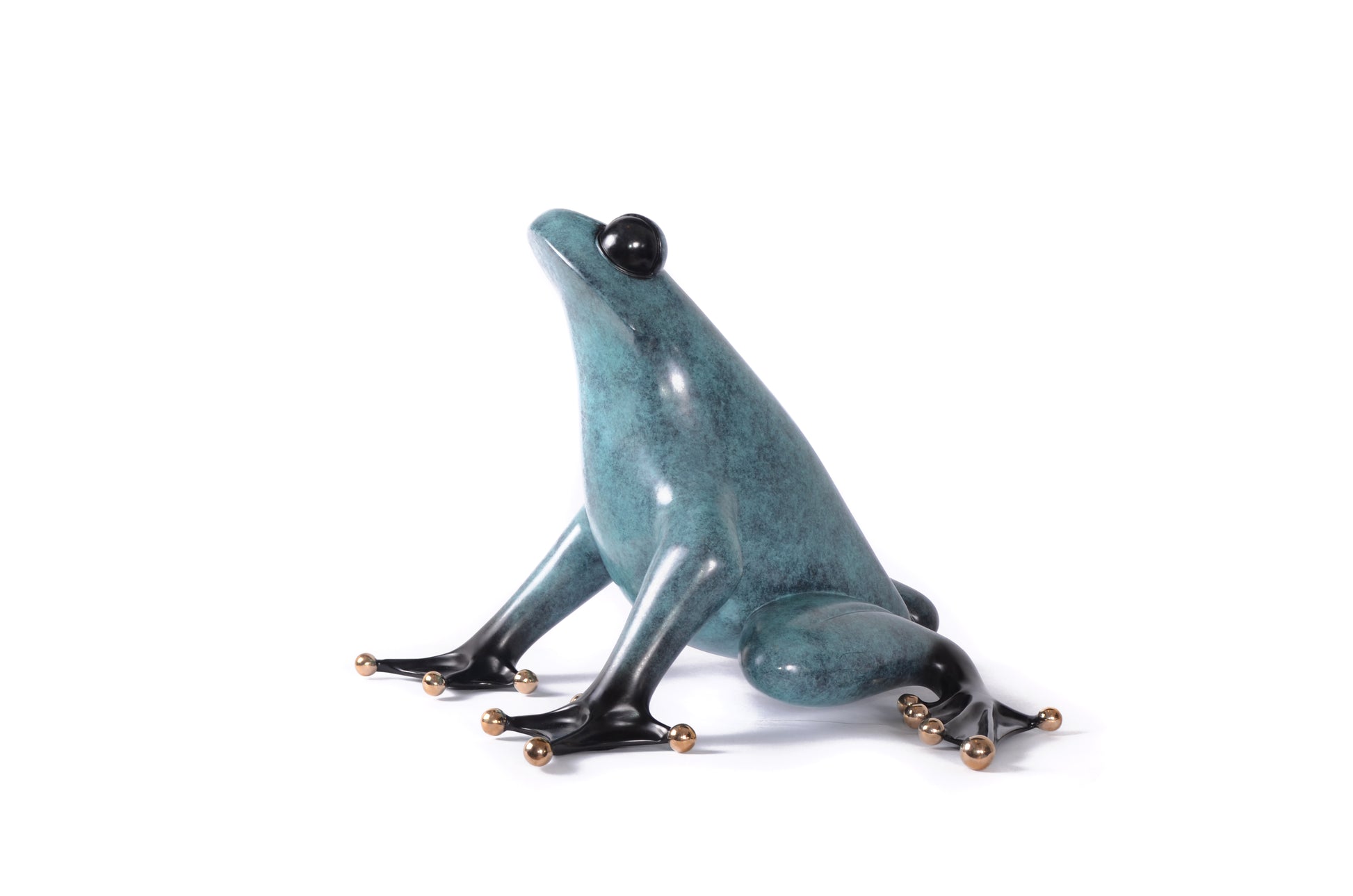 BF231 Ferguson Edition Size 100 Waxed Patina 14" L x 18" W x 11.75" H Larger than life, the ever-so-engaging Ferguson joins the Frogman Pond. Available in the patina of your choice, this captivating sculpture can acclimate to any environment, be it indoors or outdoors. For those fortunate collectors who own Frederick, Ferguson is the ideal companion. Tim Cotterill delights, once again, with this undeniable classic!
