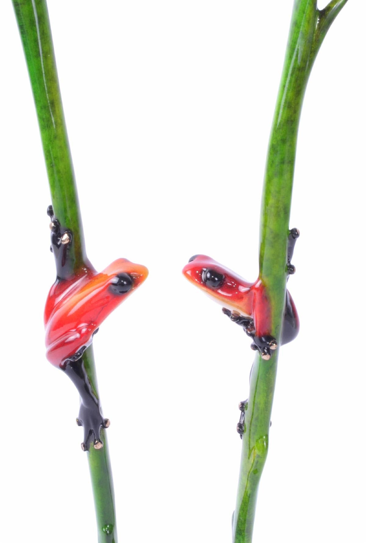 Je t’aime BF259 Edition Size: 250 3" x 3.75" x 9.5" https://youtu.be/LQ1gZcsAiP8 Seeking their soul mates, two perfectly matched frogs gaze expectantly at each other, as they cling to reedy blades of grass on a heart-shaped base. The ever-present Cotterill ladybug completes this Valentine vignette, suitably named, Je t'aime.