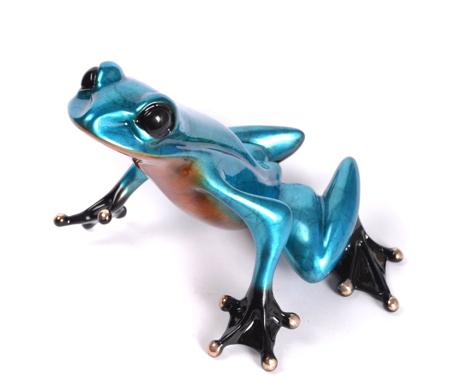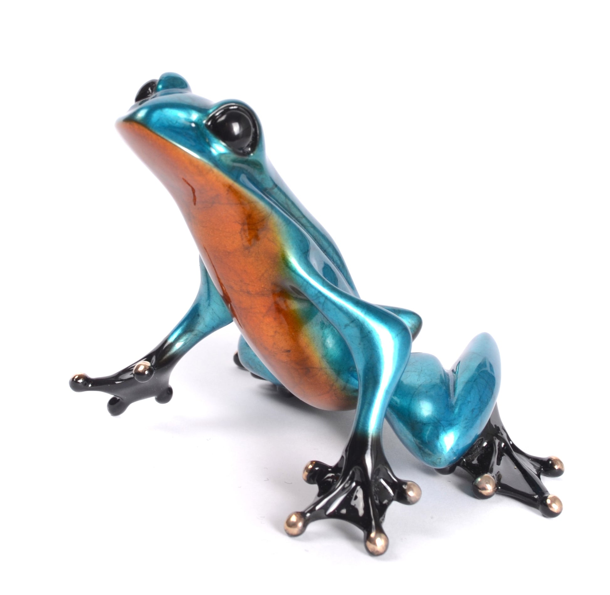 "Vesper" Introducing Vesper our 2022 Exclusive Gallery Edition. As a special edition frog created specifically for One of Kind Gallery, Vesper is available in a very limited edition of only 35 sculptures. With a coloration reminiscent of the hues of sunset, Vesper (meaning, evening) basks in twilight's afterglow. This bi-colored frog is sure to be a eye catching addition to your collection. Event Variation of BF258 "Mirari"