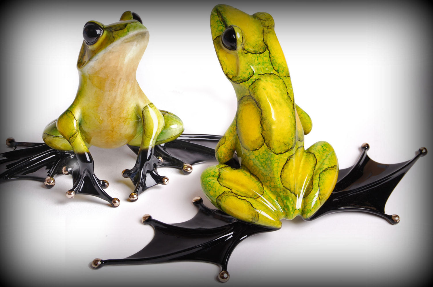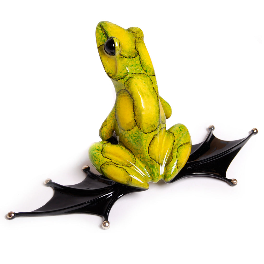 JUMP START BF139 5″ x 4.75″ x 10.25″ Year- 2010 Edition Size: 2000 Tim Cotterill sculpted Jump Start with the over sized feet of a frog ready for a colossal jump! This sculpture features “watercolor” like rings with green over a yellow base. A must for any serious Frogman fan!