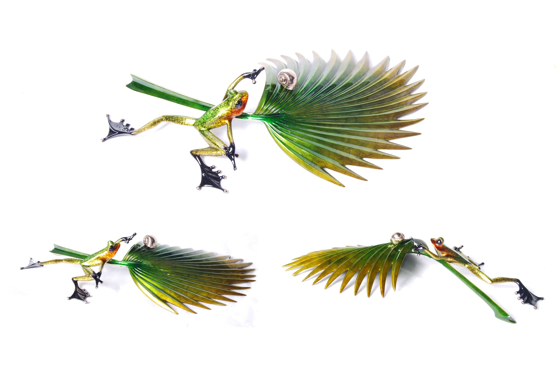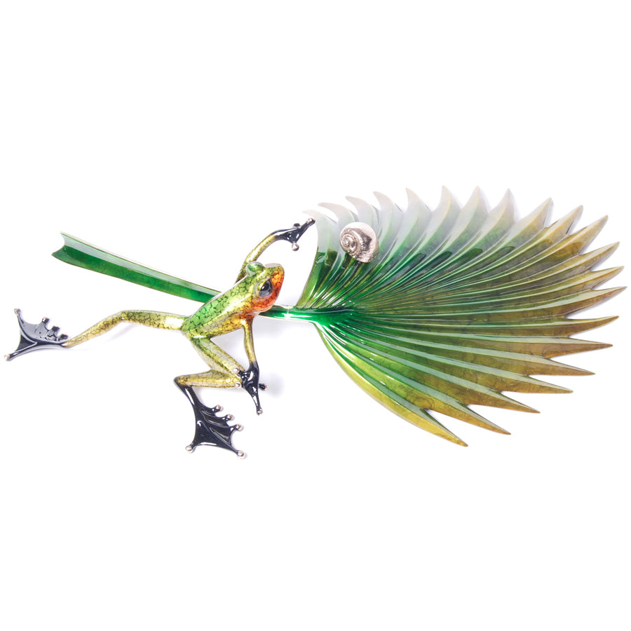 Midas Touch BF159, 2012, Bronze, Limited Edition of 500, Signed & Numbered, 15 x 8.25 x 3, Color/Finish: Gold/Yellow, Green This sculpture is a smaller version of Midas Touch, only in different colors. The frog features a beautiful crackle finish in gold and green.