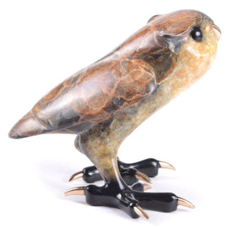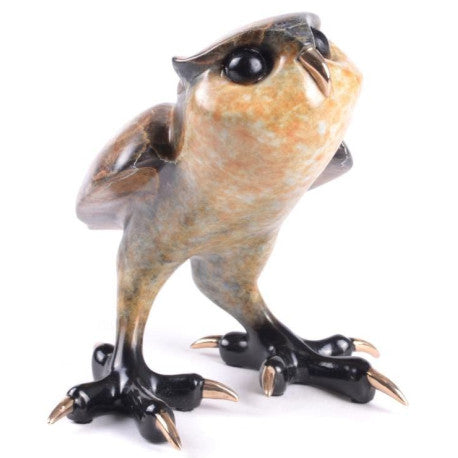 Nelson BF287 Edition Size: 350 SRP $880 5.25" x 5.75" x 5" Tim Cotterill delights, once again, with the release of Nelson, his charming new owl. A selectively patterned, multi-hued, earthy patina captures the essence of Tim’s favored subject matter. Exuding the traits and demeanor expected of the classic Cotteril owl – intelligence, wisdom, mystery, curiosity, and, of course, the exaggerated feet and talons - Nelson takes flight. Welcome to The Cotterill Parliament, Nelson.