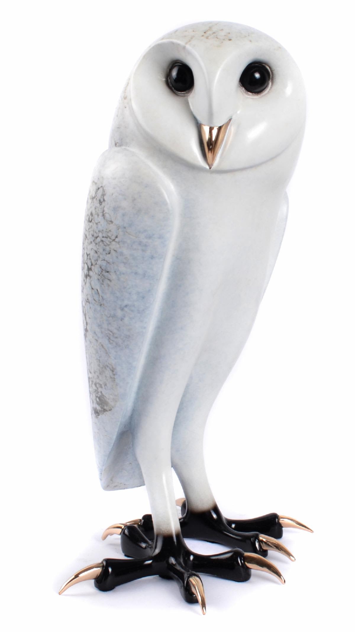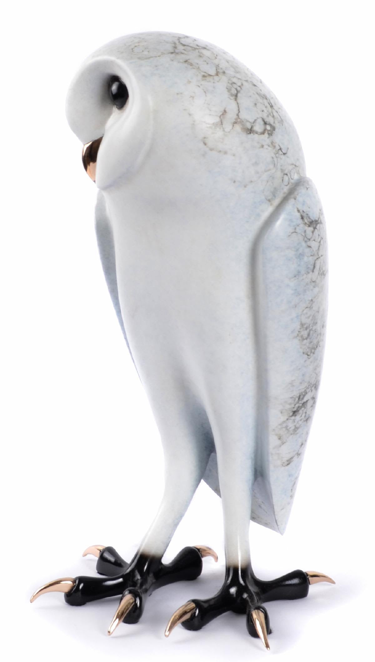 BF260 Shackleton Edition Size: 150 6.25" x 6" x 11" Obviously, owls are a most favored subject matter for Tim Cotterill. Having sculpted them since 1972, he is fascinated by their beauty, character, and personality- and reminds us that, remarkably, they are the only birds with forward facing eyes. SHACKLETON, a barn owl, is the first owl of 2022 to join the Cotterill Parliament. In an effort to stylize the sculpture and accentuate the barn owl’s traits, Tim intentionally exaggerates the size of the feet and the talons. All of the details have been stripped away, never compromising the message. The beauty, the character, and the personality of this fine example of its species, comes through loud and clear!