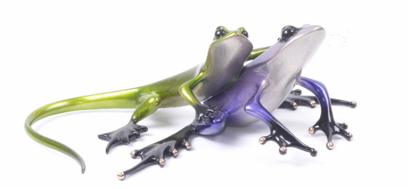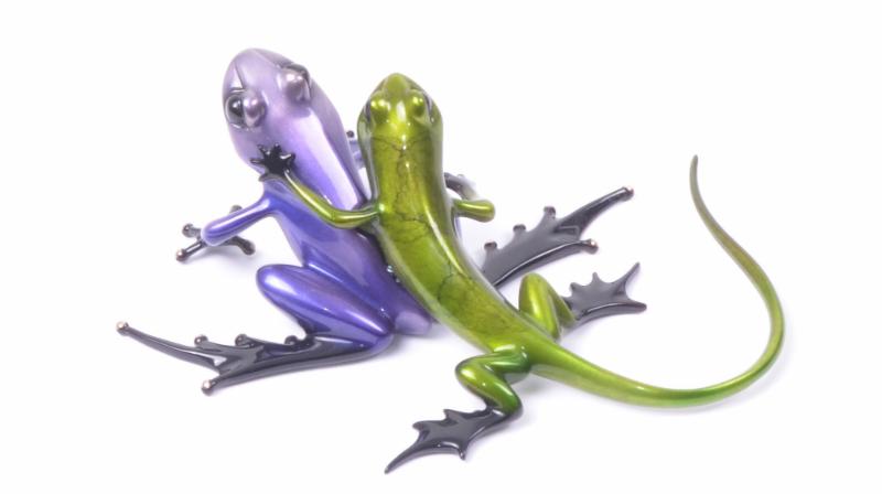 Sidekick - 2016, Bronze, Limited Edition of 350, Signed & Numbered, 6 x 5.75 x 9.5, Color/Finish: Lime Green, Purple Frogman delights us with Sidekick. Vibrant nitrate patinas adorn this unlikely alliance.