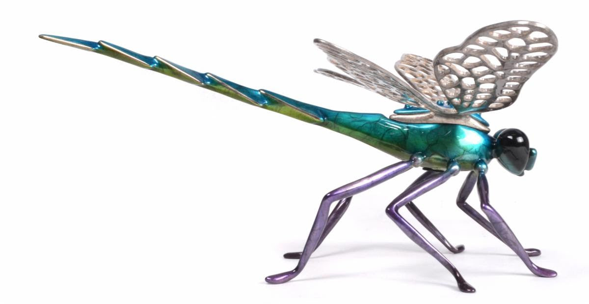 BF262 Symphony Edition Size: 100 $2,390 17" x 16" x 8" Sitting by my pond, one glorious sunny California afternoon, having a cup of tea, I noticed a large, blue dragonfly resting, motionless, on a beautiful purple flowering water lily. Soon, another dragonfly appeared, creating great excitement. Both started chasing the other, at very high speeds. Their dance continued, with fluid, swooping maneuvers...so very magical to watch. I reached for my pad and pencil-I felt inspired to create. I offer to you, SYMPHONY.".....Tim Cotterill