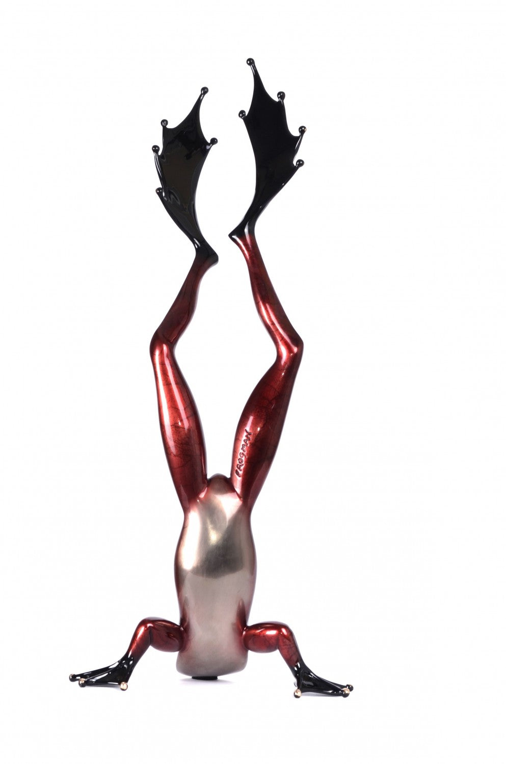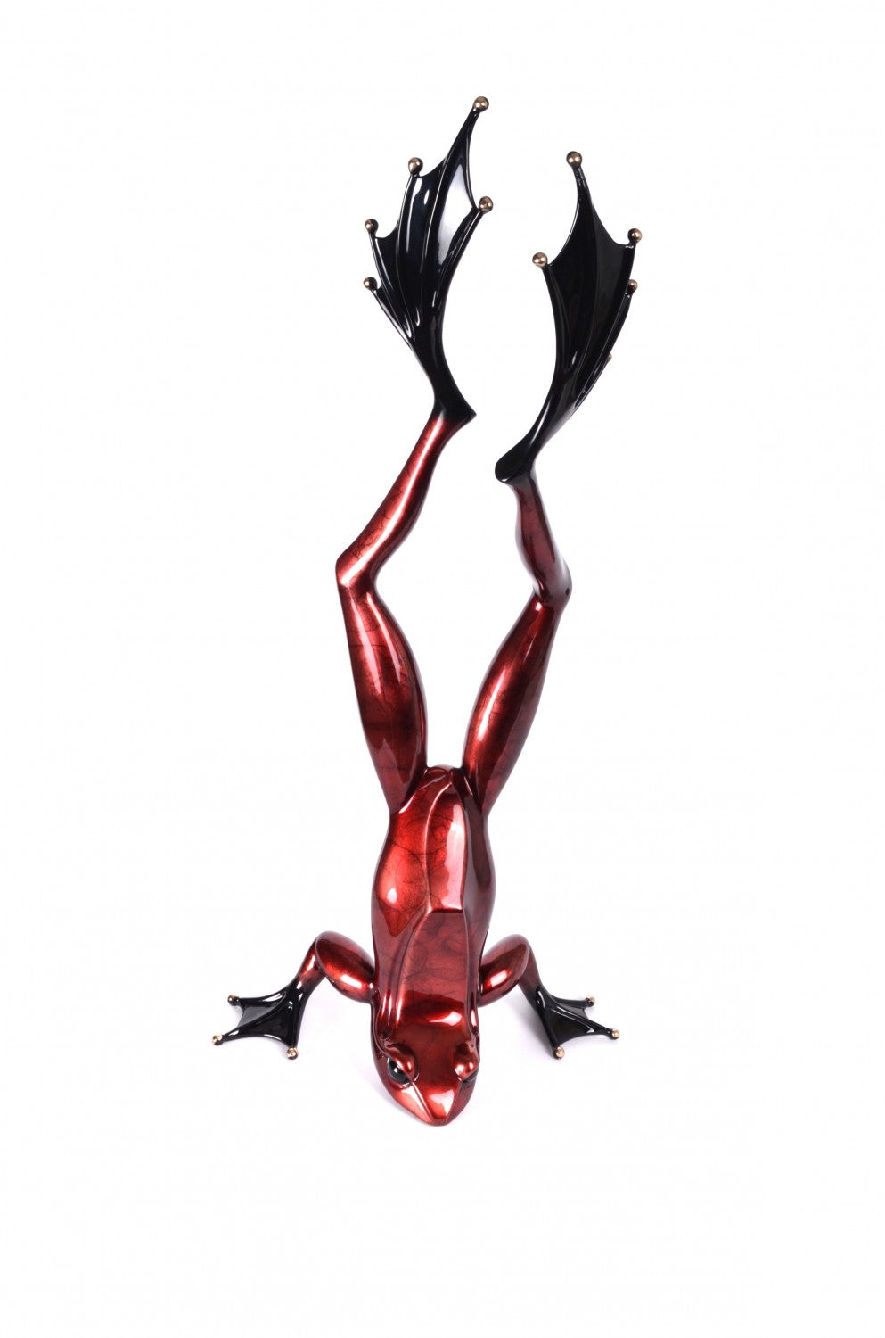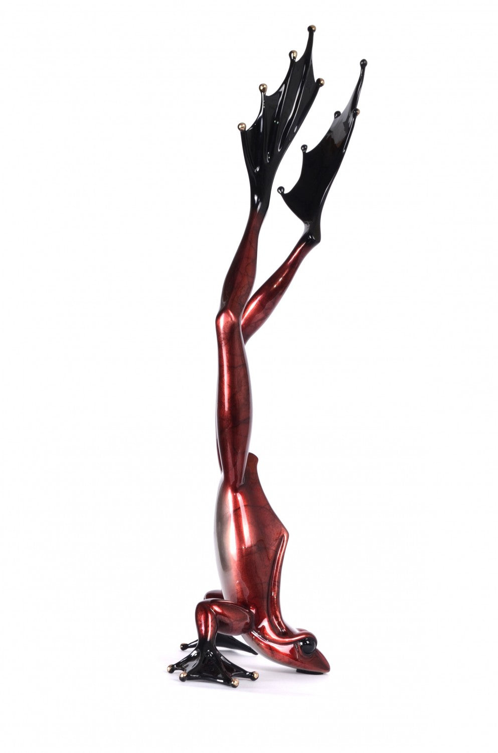 BF271 Edition Size: 300 SRP $2,355 8.5" x 4.75" x 18.5" Quite the exhibitionist, the persistently inverted “Syrah” stakes out his position as the guardian of the FROGMAN pond. Sporting a bold silver nitrate burgundy-toned patina with a radiant silver underbelly, this powerful amphibian is clearly suited to its name. Welcome to the pond, “Syrah!” Bottoms Up!!!