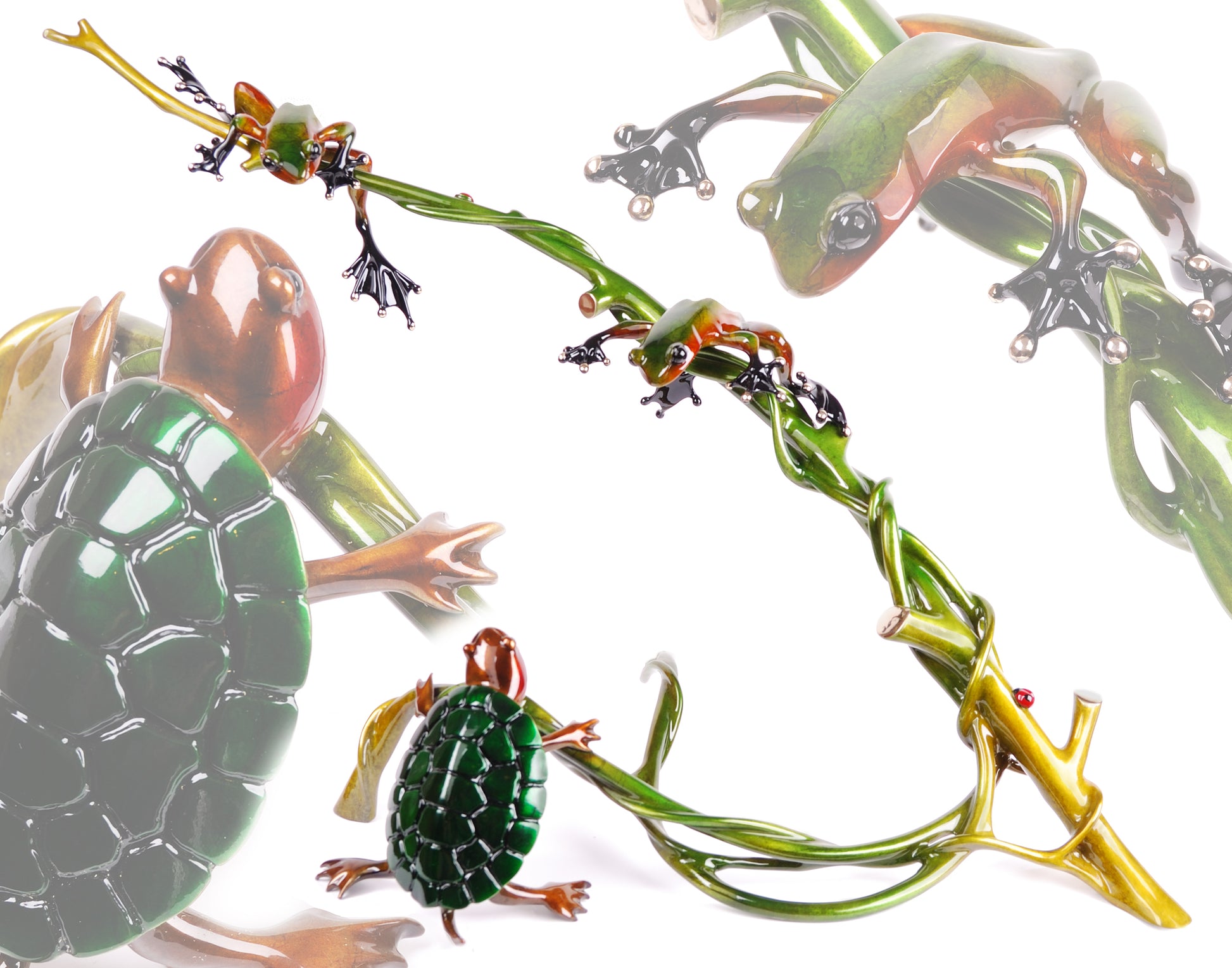 Turtle Creek BF135 - 2010, Bronze, Limited Edition of 750, Signed & Numbered, 10.25 x 21 x 12.25, Color/Finish: Green, Gold, Brown Tim created a beautiful nature setting of two frogs interacting with a turtle.