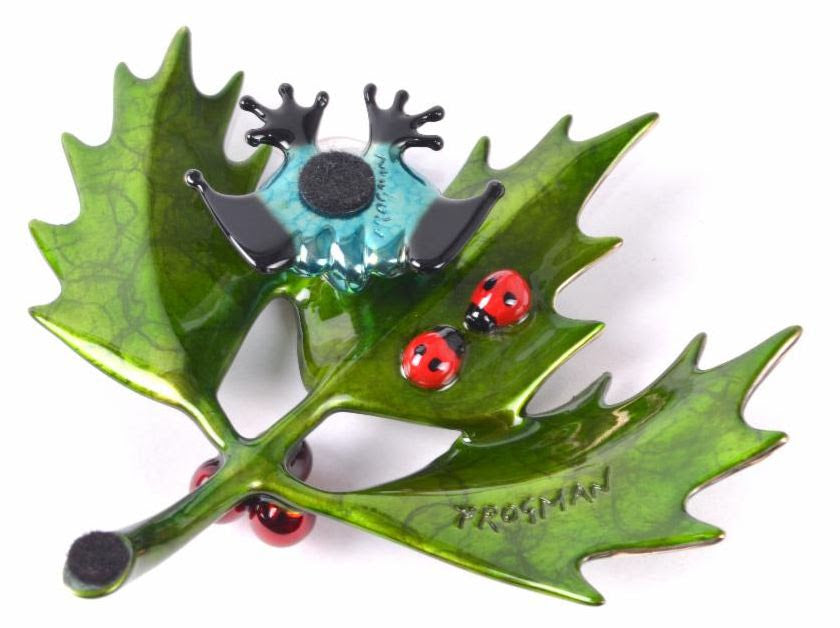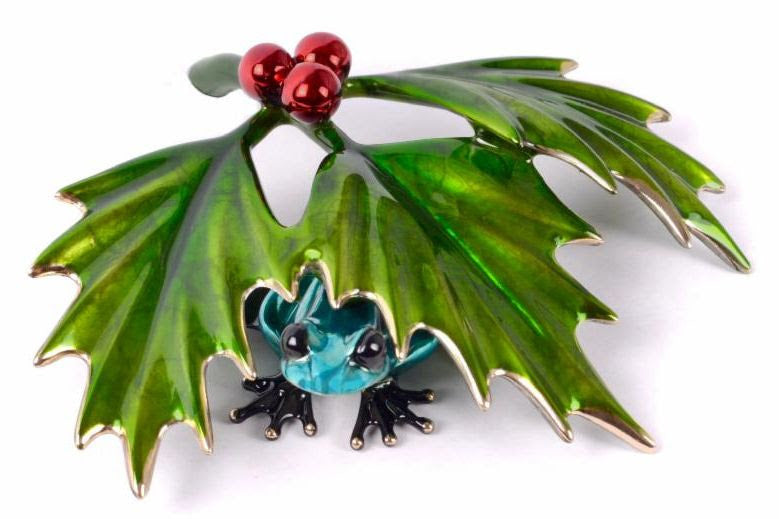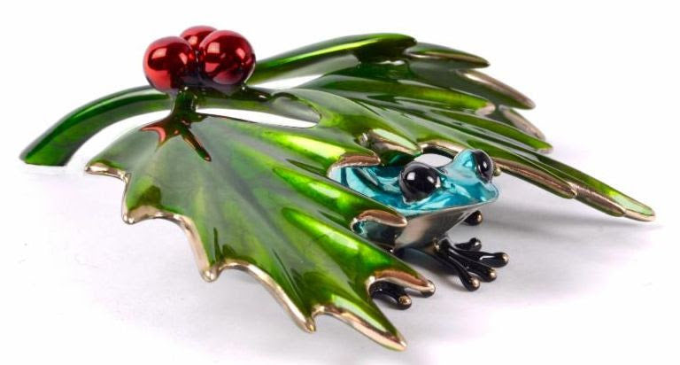 Wonderland BF282 Edition Size: 250 $880 5.5" x 5.75" x 1.75" A high-gloss teal, patterned frog boldly ventures forth from beneath a lush green holly leaf, accented with polished bronze tips. Lest we forget, the iconic Cotterill ladybugs make an appearance, nestled snugly under the leaf. The stunning silver nitrate patina brilliantly mimics the wonders of nature – and the glory of the season. FROGMAN’s 2024 Holiday release – a veritable WONDERLAND, indeed!